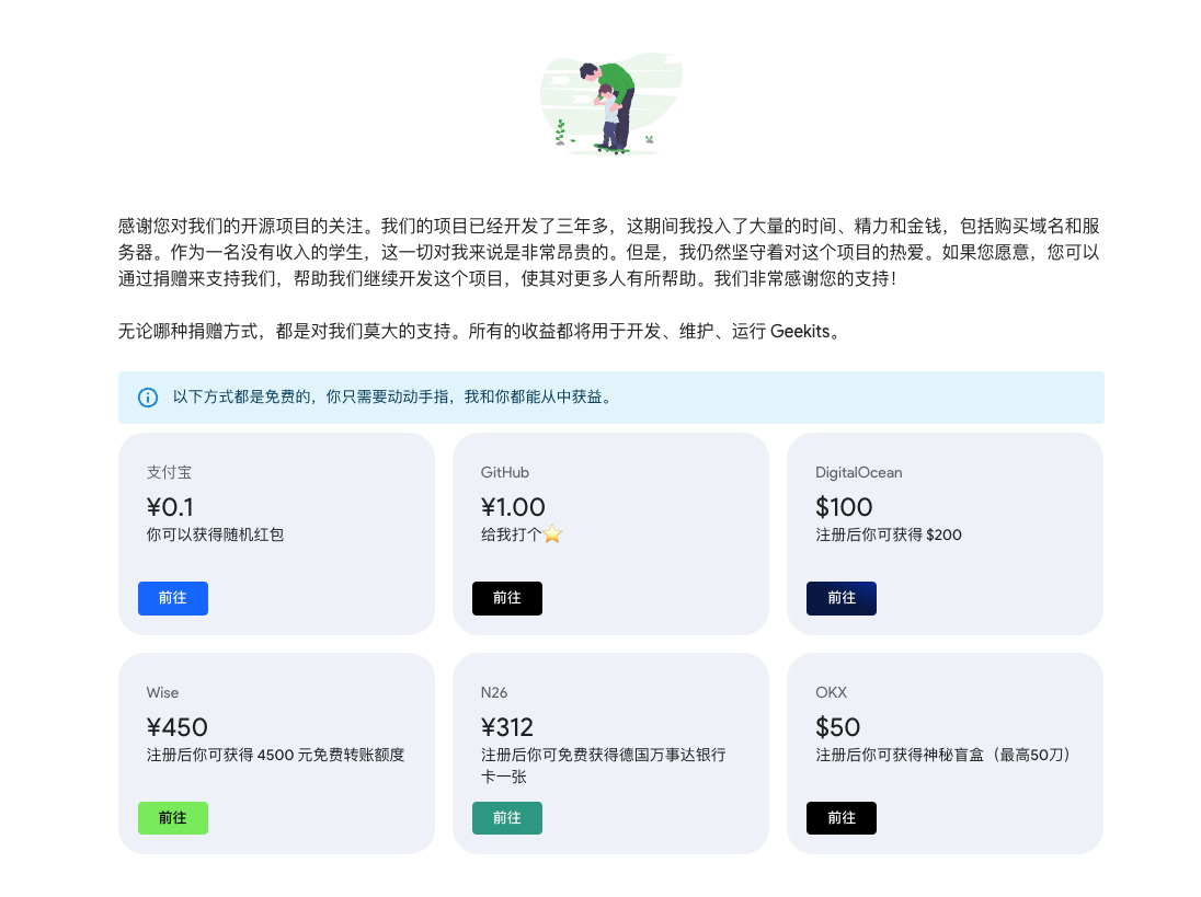 我根据这些技巧做了一个真实的页面。如果你喜欢这篇文章,或者 Geekits 帮到了你,可以直接在页面上给我支付小费:-)